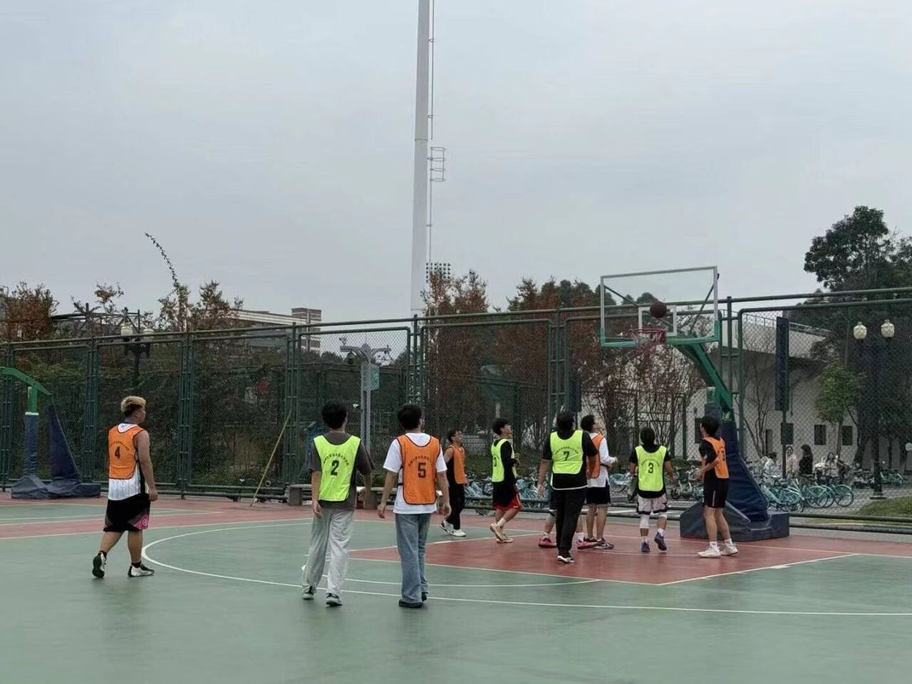 男子5v5赛场堪称“硬核较量”。双方球员身着整齐队服,眼神坚定,斗志昂扬。随着裁判一声哨响,篮球在空中划出完美弧线,队员们迅速进入状态。抢断、传球、突破、投篮,每一个动作都精准利落。进攻时,他们默契配合,撕开对方防线;防守时,他们紧密联防,用顽强意志筑起铜墙铁壁。快攻中的风驰电掣,篮板下的激烈拼抢,三分线外的精准命中。