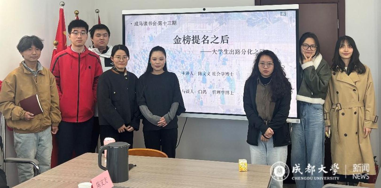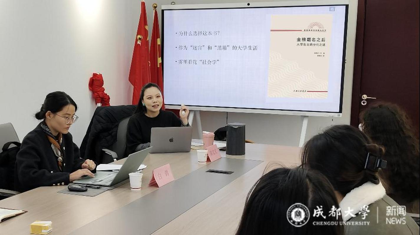 马克思主义学院“成马读书会”第十三期于第一教学楼1312室顺利举行。本次读书会聚焦社会学著作《金榜题名之后》,深入探讨了当代大学生的发展困境与出路。学院讲师、社会学博士陈文文老师担任本次读书会主讲人,成都理工大学马克思主义学院讲师、管理学博士白鸽老师为与谈人,研究生王骋远主持。学院部分师生参加了本次读书会。